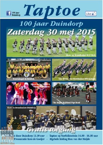 Tijdens het 100-jarige jubileumfeest van Duindorp in 2015 verzorgde de show- en drumfanfare een mooi optreden.